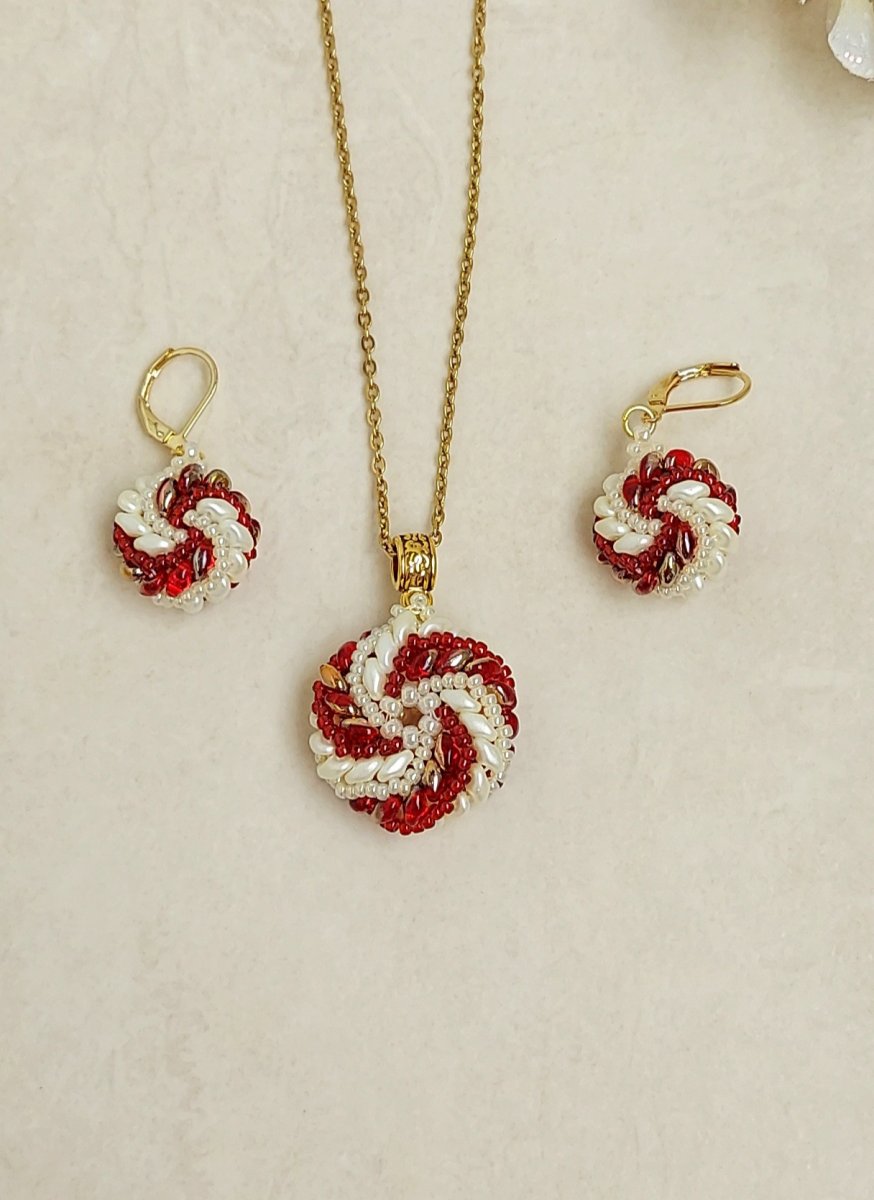 Materiál: dvoudírkové korálky Superduo, kvalitní skleněné japonské korálky Miyuki, pevná nit Fireline, kovové komponenty