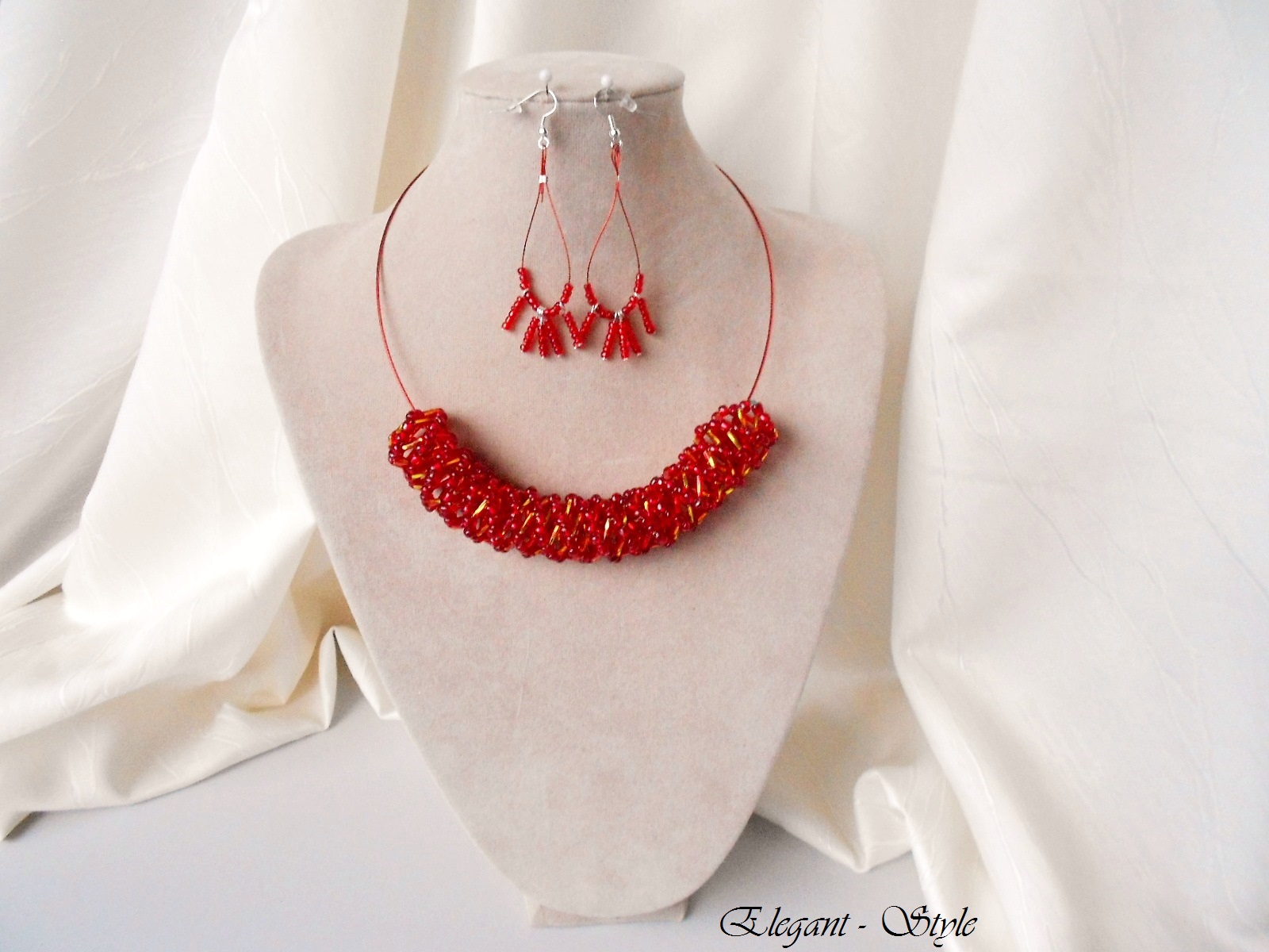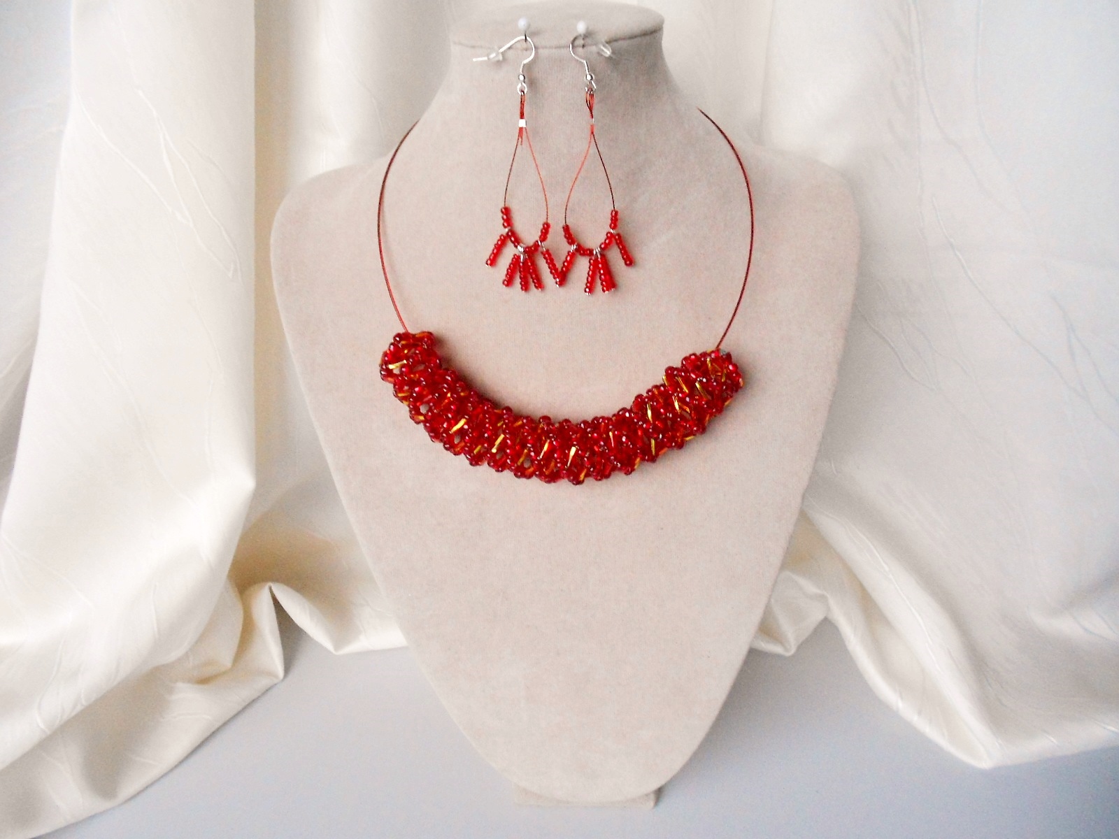 Šitá spirála tzv. šroubovnice z červeného rokajlu se stříbrným průtahem a trubičkovým rokajlem.