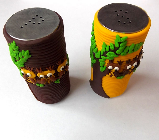 Pepřenka a slánka nerez, ocel potažená a zdobená fimem.
