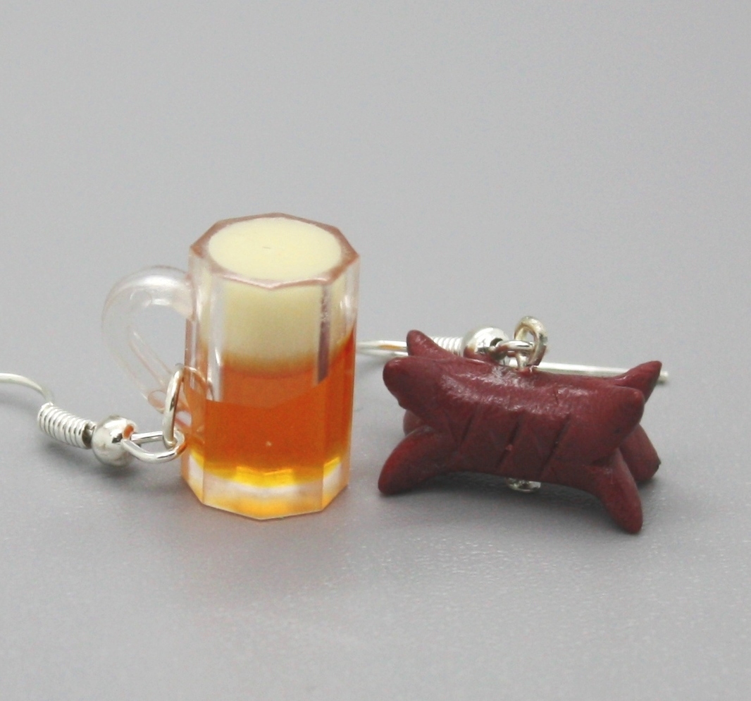 lehounká napodobenina půllitru s pivem, ručně modelovaný špekáček z fima,