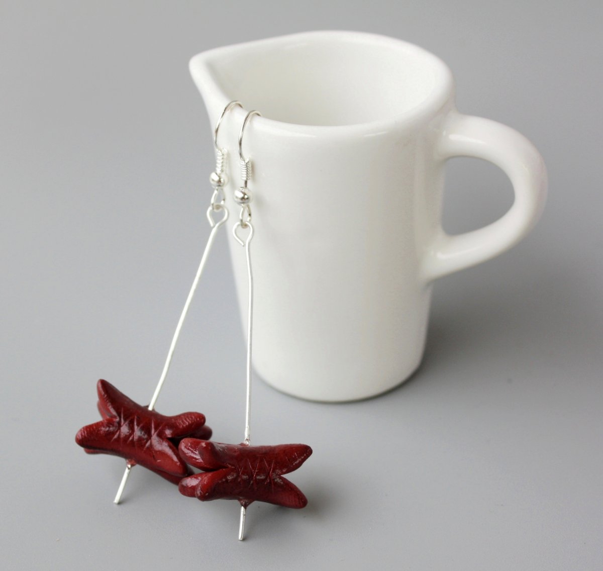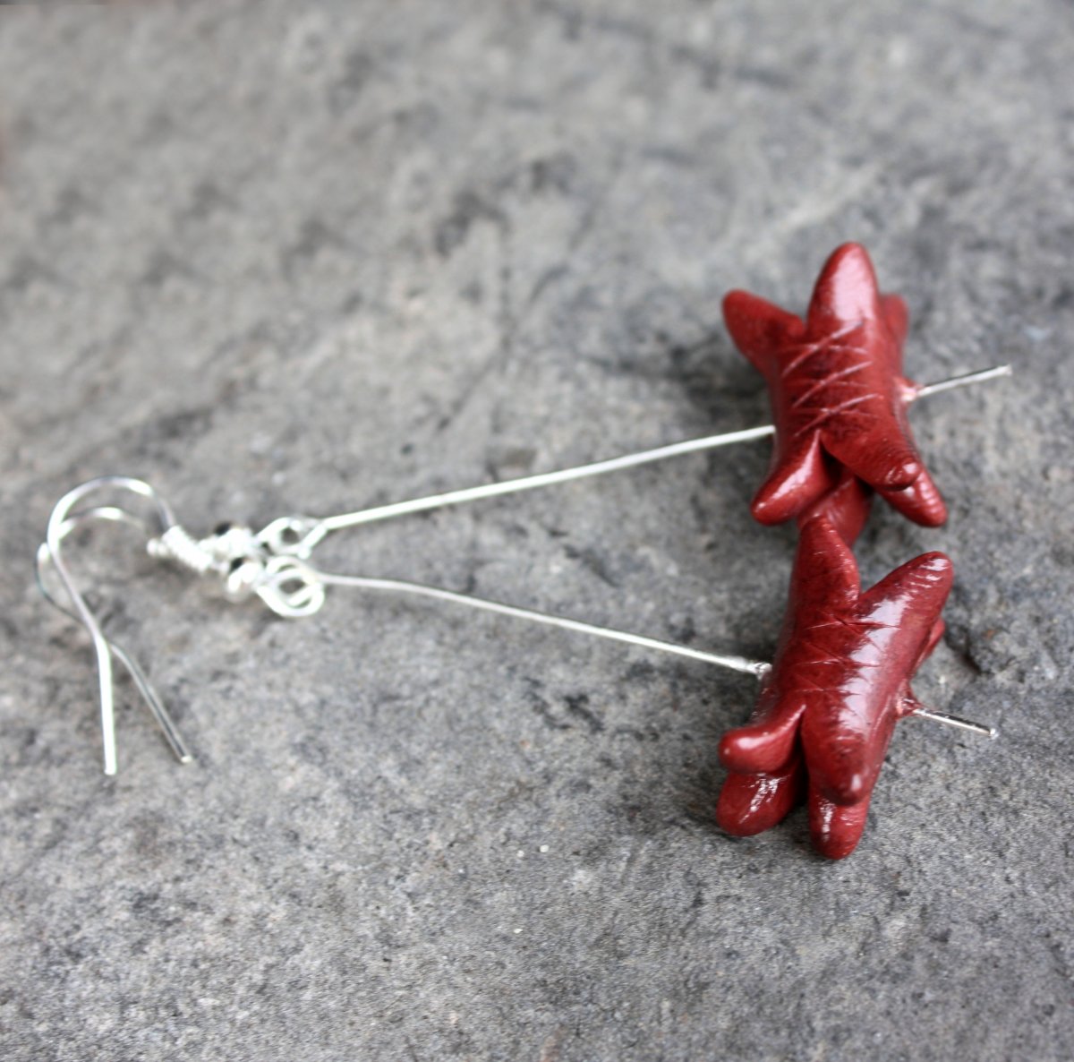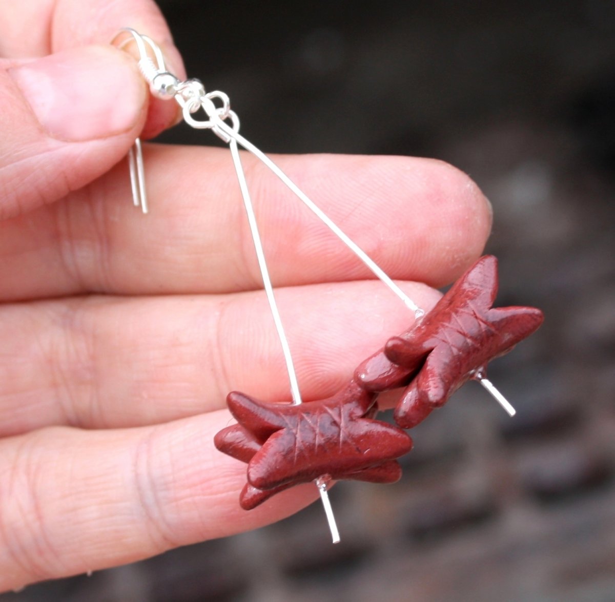 modelovaný šperk z polymerové hmoty, na stříbrných afroháčcích,