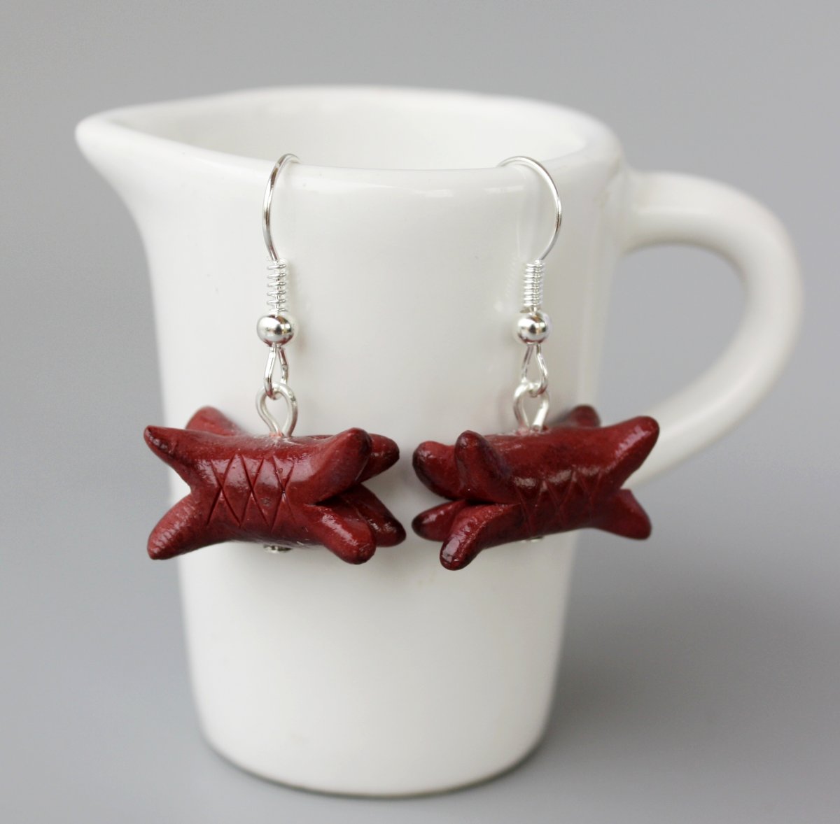 modelovaný šperk z polymerové hmoty, na stříbrných afroháčcích,