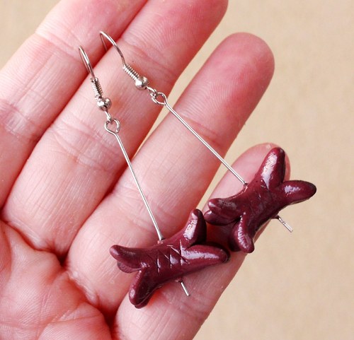 modelovaný šperk z polymerové hmoty, na stříbrných afroháčcích,