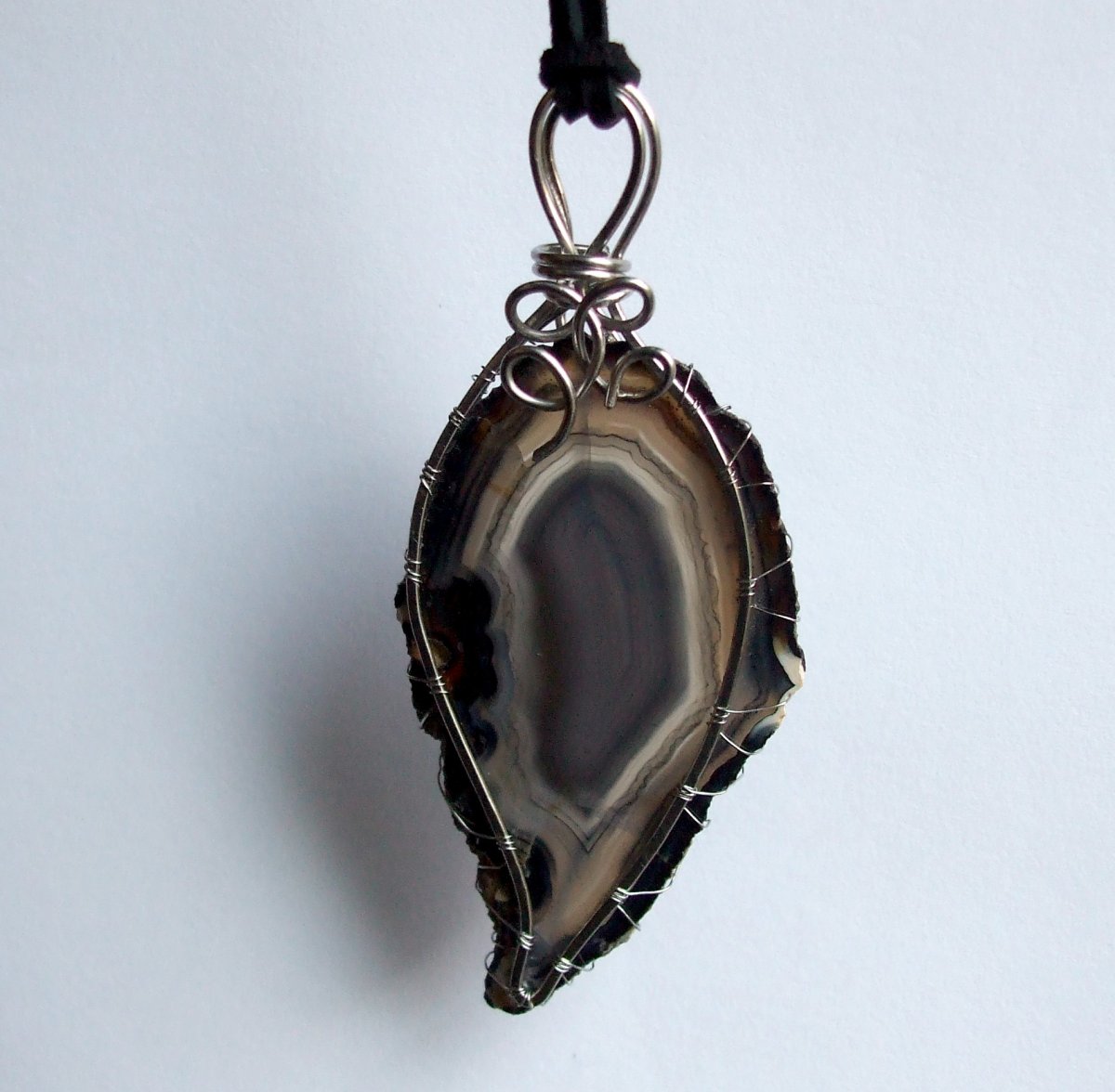 Tento šperk tvoří řez polodrahokamu Achátu a nerezová, stálobarevná, kvalitní ocel.