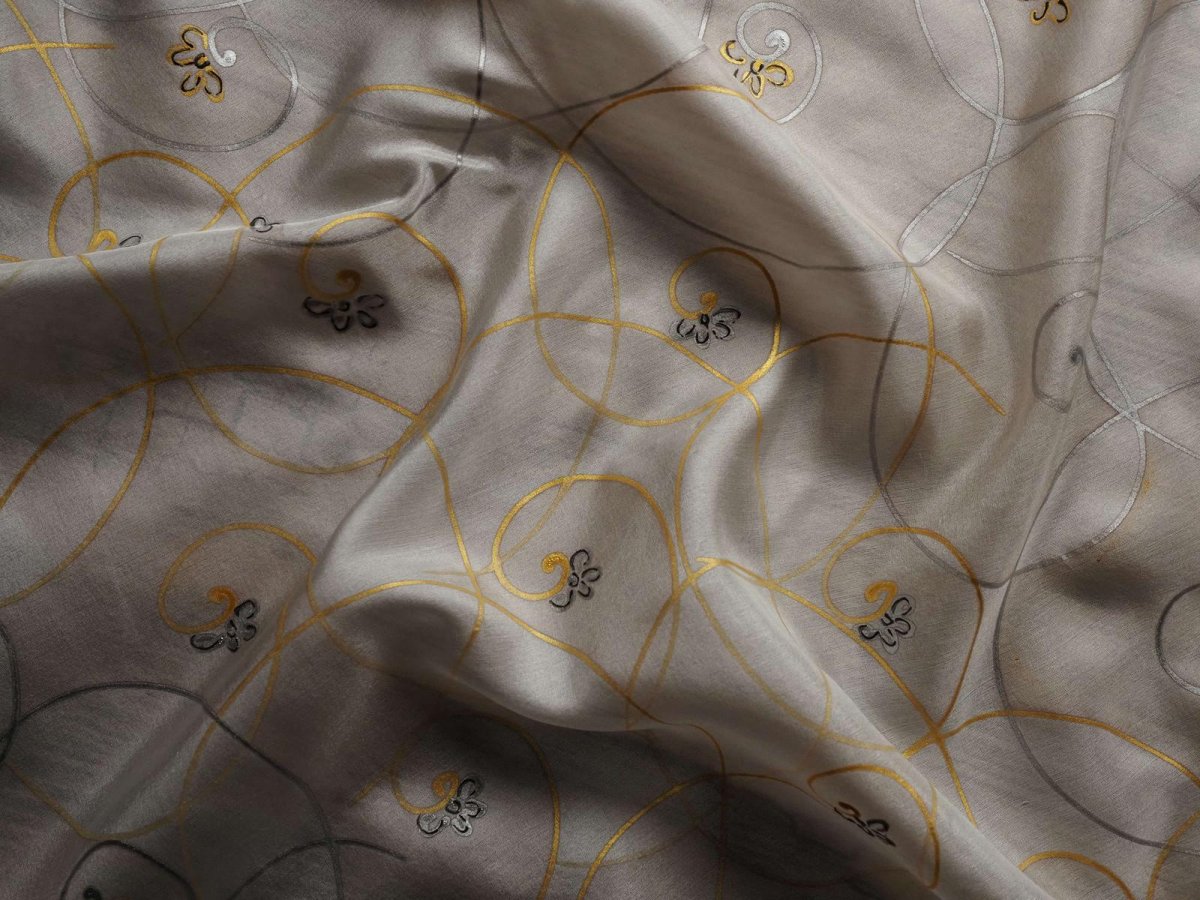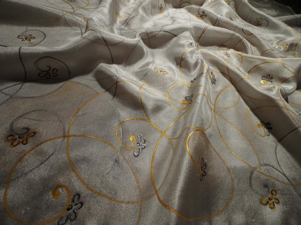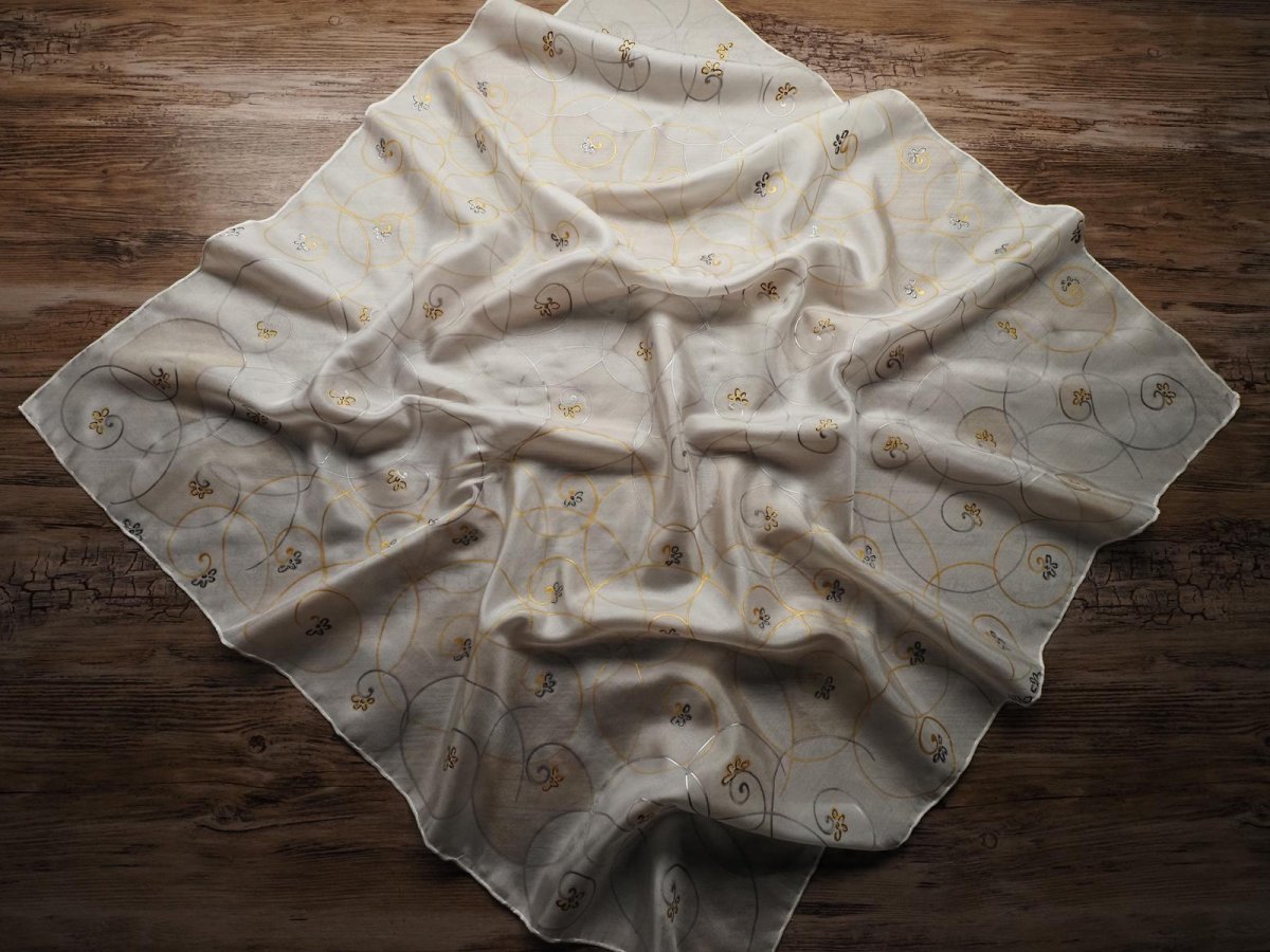 Ručně malovaný šátek z přírodního hedvábí (pongé 5). Použití kvalitních barev a tepelné fixace zaručuje dlouhodobou odolnost při opakovaném praní. Snadno se žehlí.