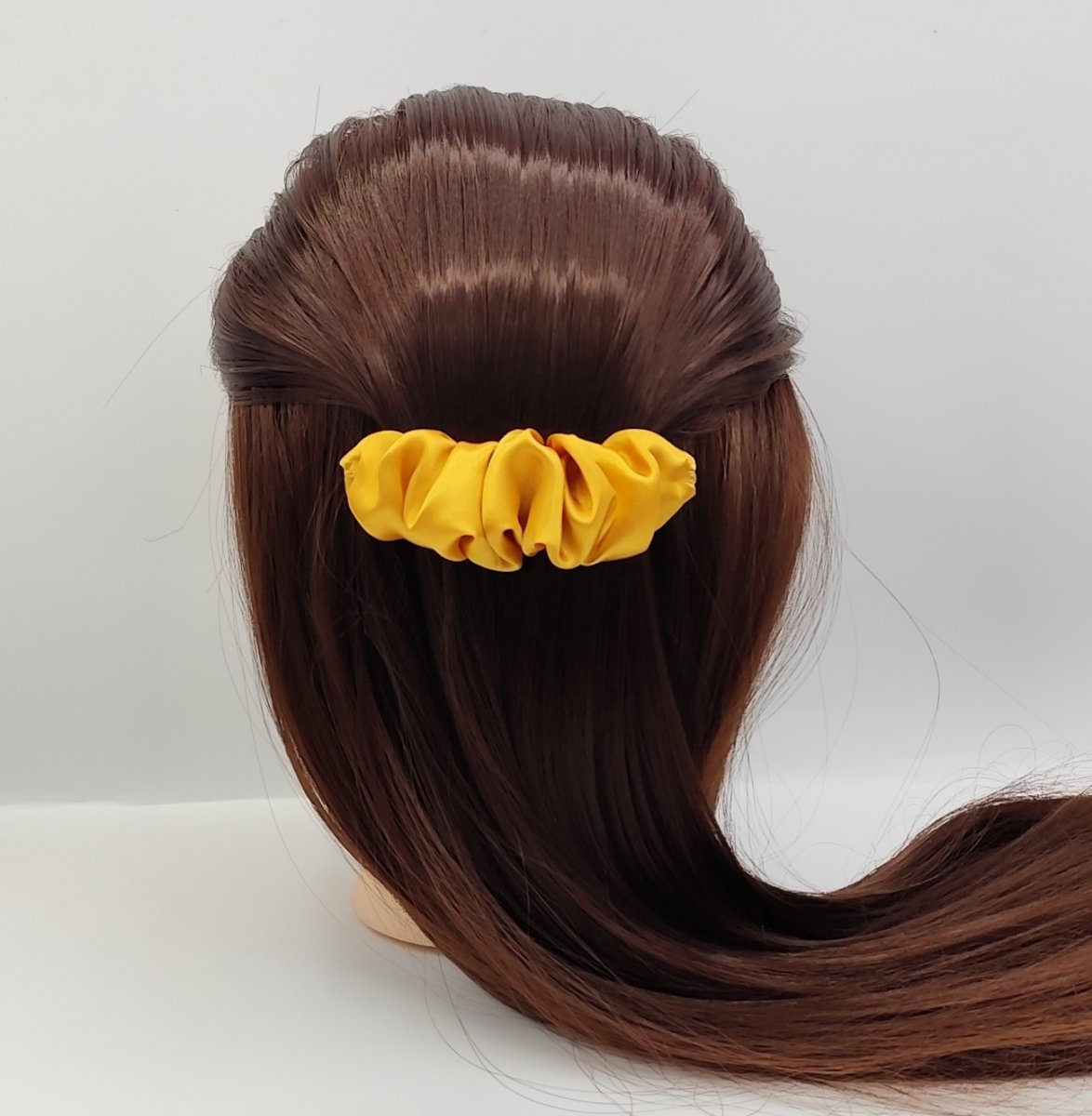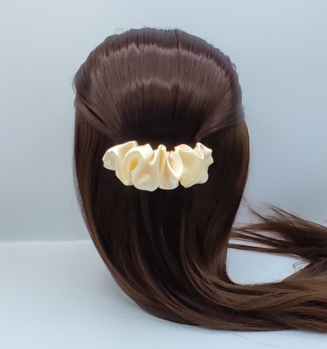 Dárková sada obsahuje 3 saténové spony do vlasů scrunchie barrette v champagne, reflexní a zlaté barvě.