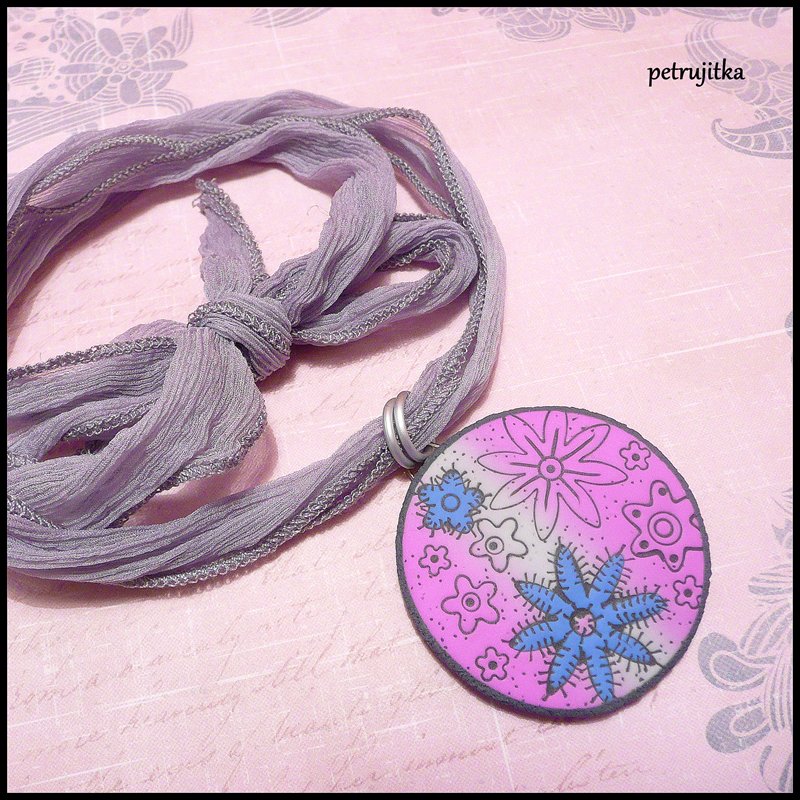 Originální dámský náhrdelník s přívěskem z polymerové hmoty. Barva je