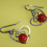 Náušnice"Srdíčka s mořským korálem" jsou ručně tepané z chirurgické oceli, ozdobené červeným mořským korálem. Konce náušnic jsou pečlivě zabroušeny:-)