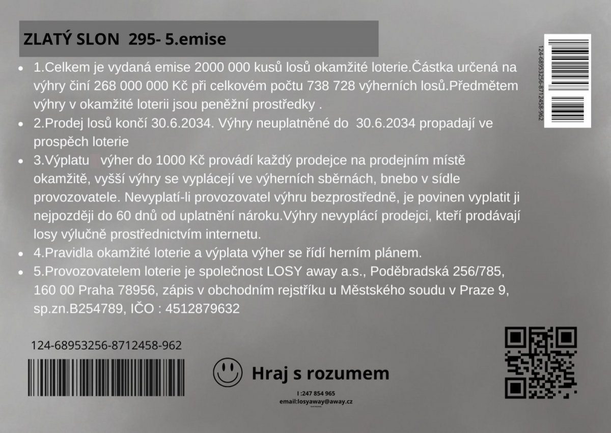 Los je tištěn na fotopapíru v gramáži 210g/m2 a má dvě stírací pole.