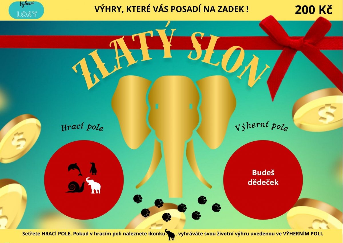 Stírací los ZLATÝ SLON pro vtipné rodinné sdělení BUDEŠ DĚDEČEK .