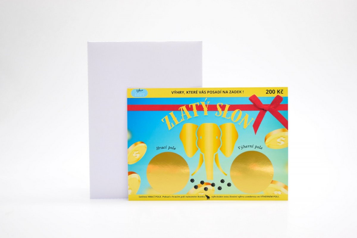 Stírací los ZLATÝ SLON pro vtipné rodinné sdělení VEZMEŠ SI MĚ? .