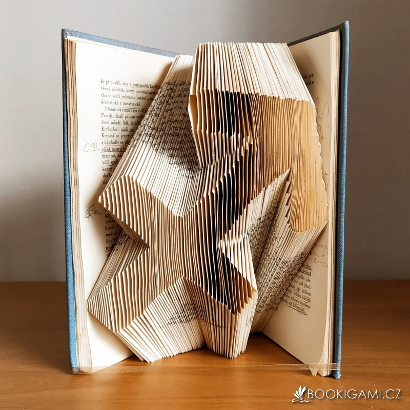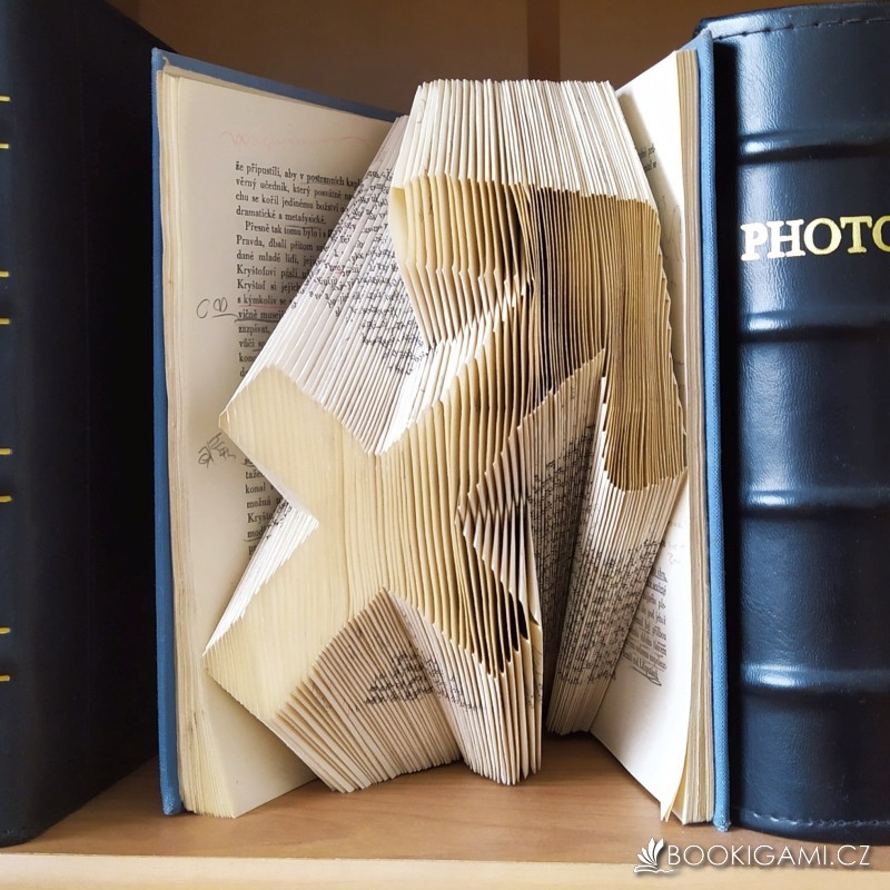 STŘELEC - znamení zvěrokruhu vyskládané do staré knihy pomocí metody ohýbání stránek. Žádné stránky nejsou vytržené ani vyřezané, pouze jsou složené tak, aby vytvářely požadovaný tvar. Kniha zůstává po rozložení stran stále čitelnou.