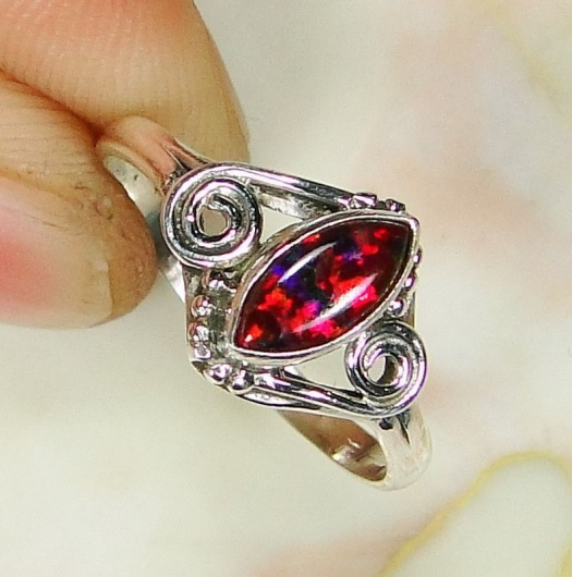 Stříbrný prsten se syntetickým australským opálem. Ruční práce. Velikost prstenu 54, vnitřní průměr 17,2 mm.