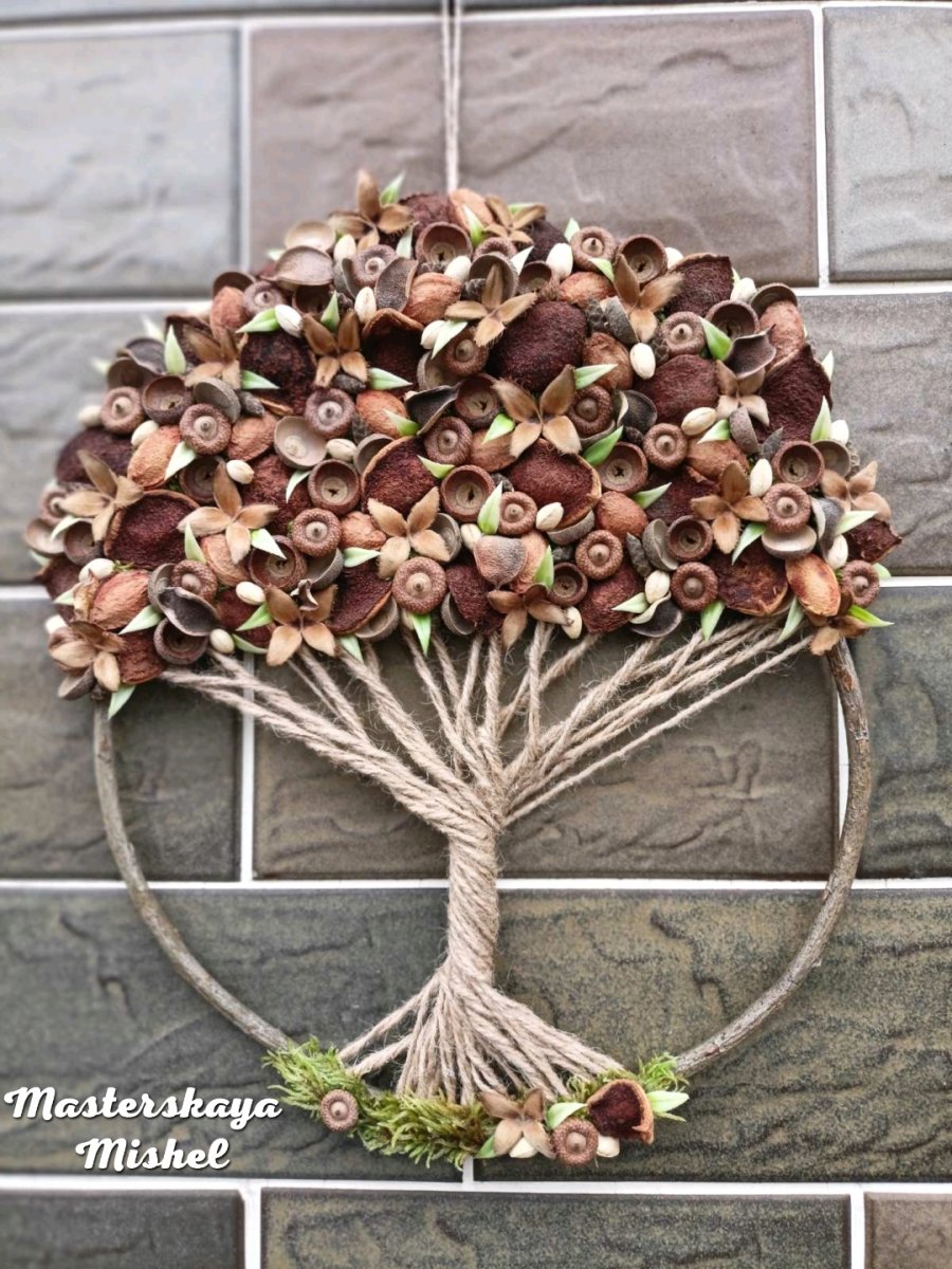 Предусмотрена петелька для крепления. С обратной стороны крона дерева обтянута декоративной мешковиной.