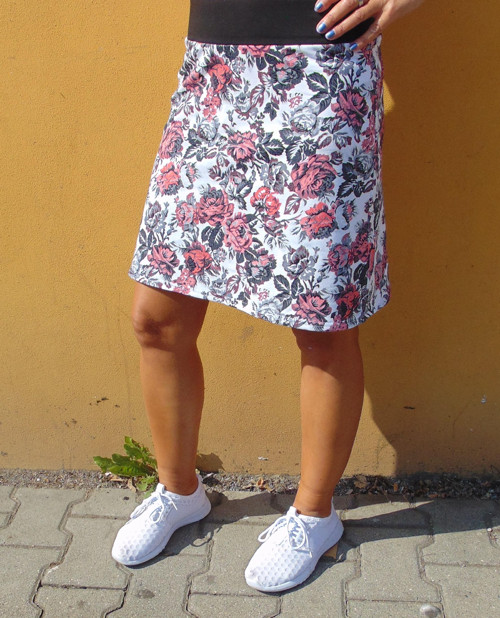 Střih je mírně do A, v pase do pružného nápletu.