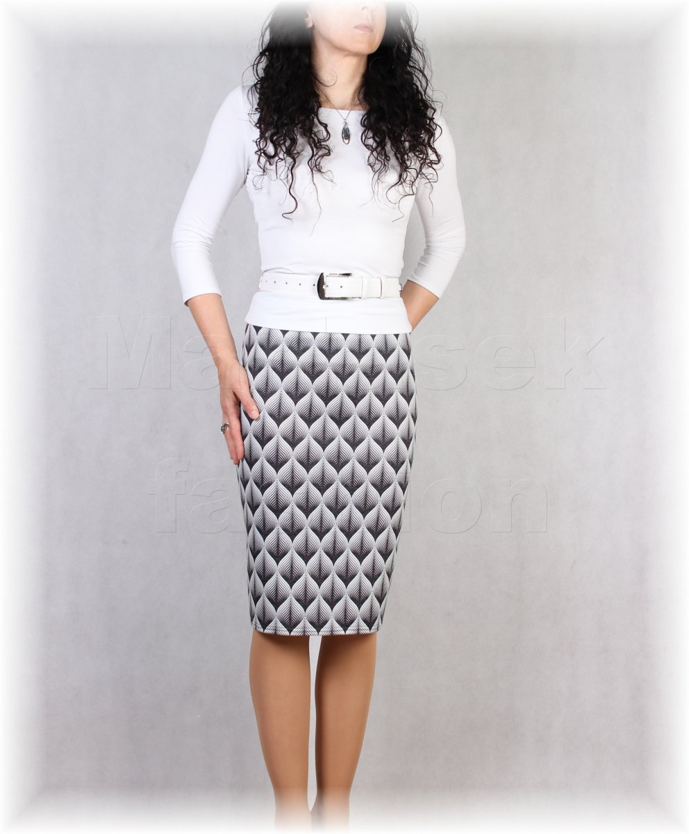 Sukně jde doplnit například triky v bílé,šedé,červené,petrolejové,černé barvě.Můžete kombinovat s jednobarevnými triky.