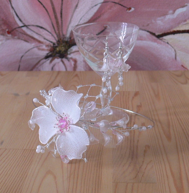 Vše je jemné, franc. závoj, perličky, potříbřený kvalitní drátek