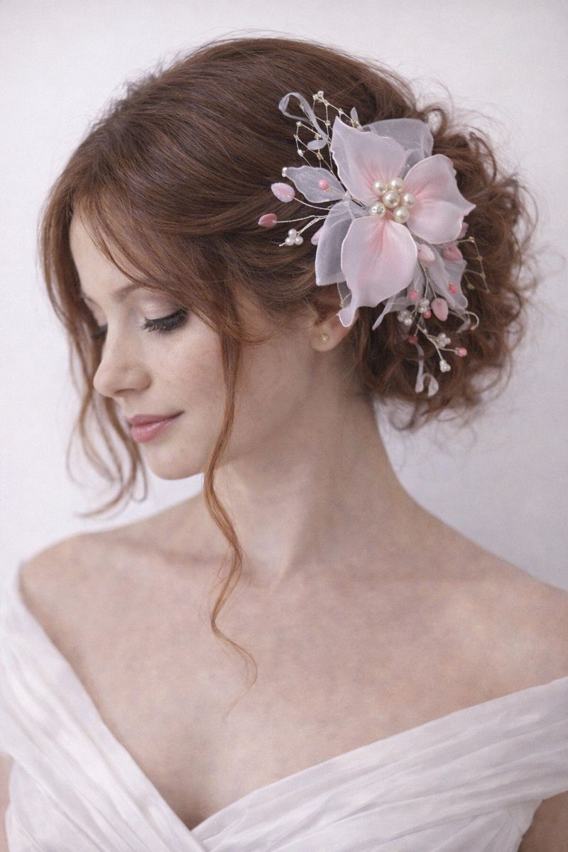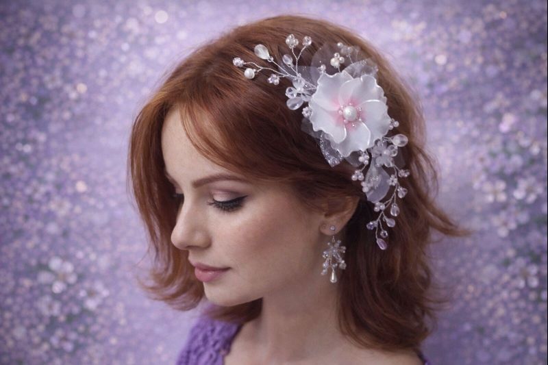 Jemná a romantická svatební ozdoba do vlasů, která dokonale doplní účes nevěsty v její nejdůležitější den. Ozdoba je ručně vyráběná z průsvitných květů, perliček a třpytivých detailů, které krásně zachytí světlo a dodají účesu elegantní, luxusní vzhled. Skvěle se hodí do drdolu, polodrdolu i romantických vln a ladí s klasickými i boho svatebními šaty.