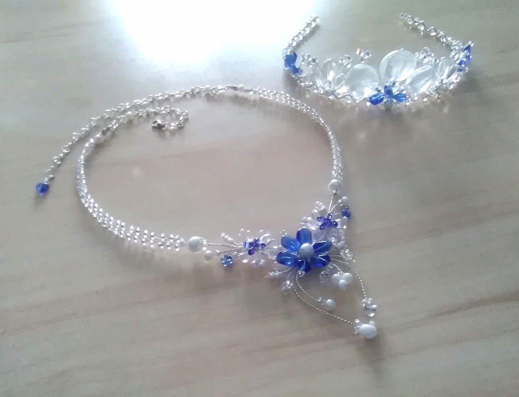 V ceně je náhrdelník, náramek a náušnice, vše ostatní na přání ráda dodělám. Délku upravuji podle potřeby. Na přání šperky zhotovím i v jiné barevné kombinaci