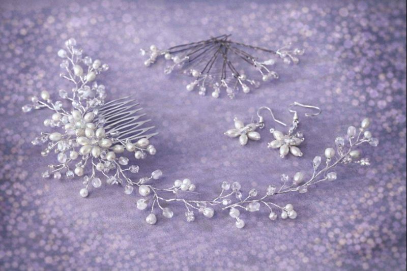 Elegantní ručně vyráběná vlasová ozdoba z postříbřeného drátku je ideálním doplňkem pro svatební a slavnostní účesy. Jemná kompozice perliček a drobných krystalků vytváří lehký, vzdušný a velmi luxusní vzhled, který krásně podtrhne účes, aniž by jej zatížil.