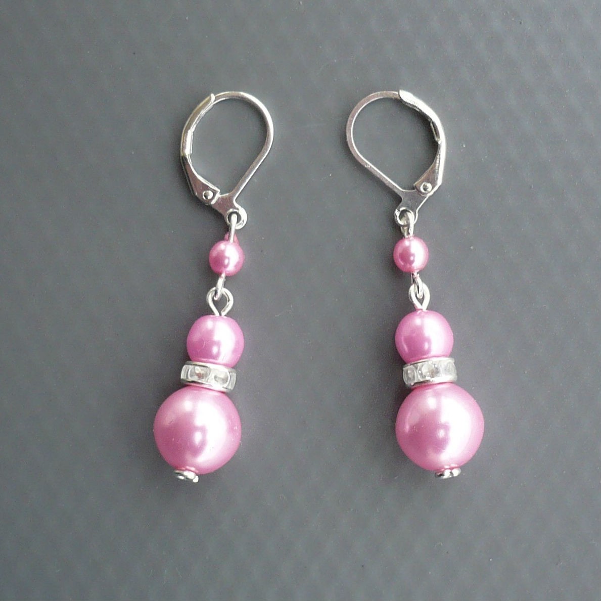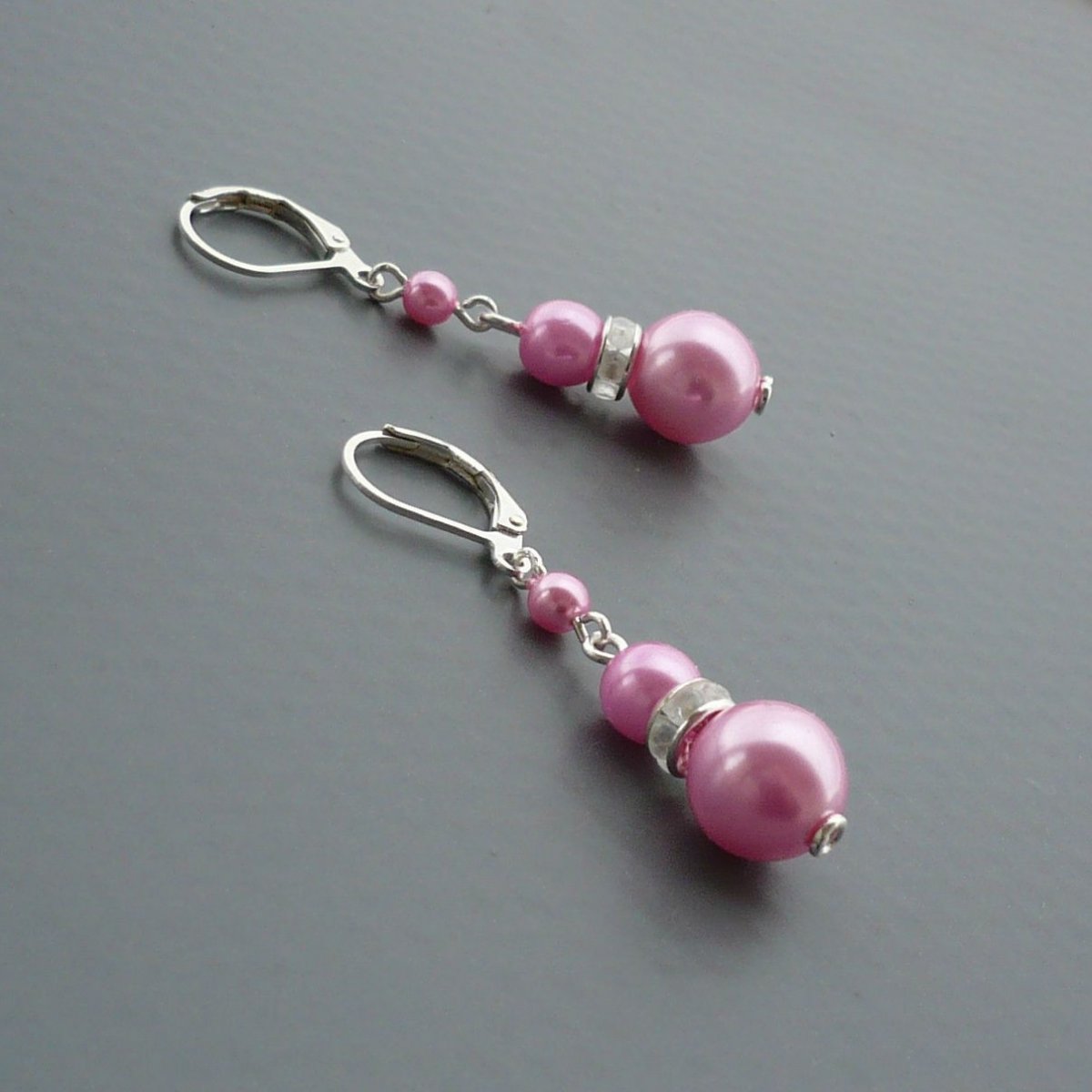 Jednoduché krátké náušnice jsou tvořeny světle růžovými voskovanými perličkami. Perličky jsou od sebe odděleny štrasovým komponentem s čirými kamínky, který dodává náušnicím jedinečný vzhled.