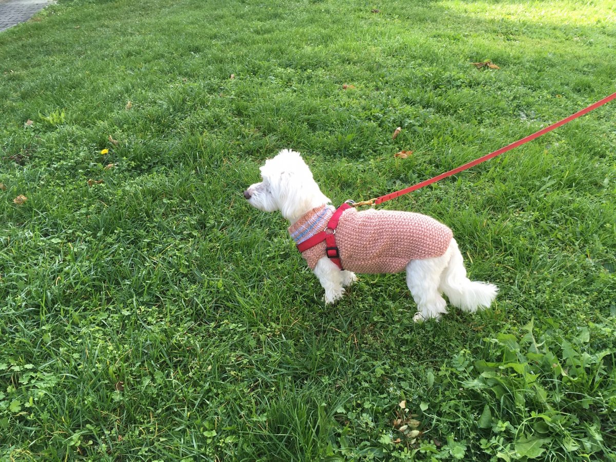 Pro malé pejsky a jejich páníčky, kteří mají rádi veselé,jemně barevné oblečky je určený tento pletený svetřík.