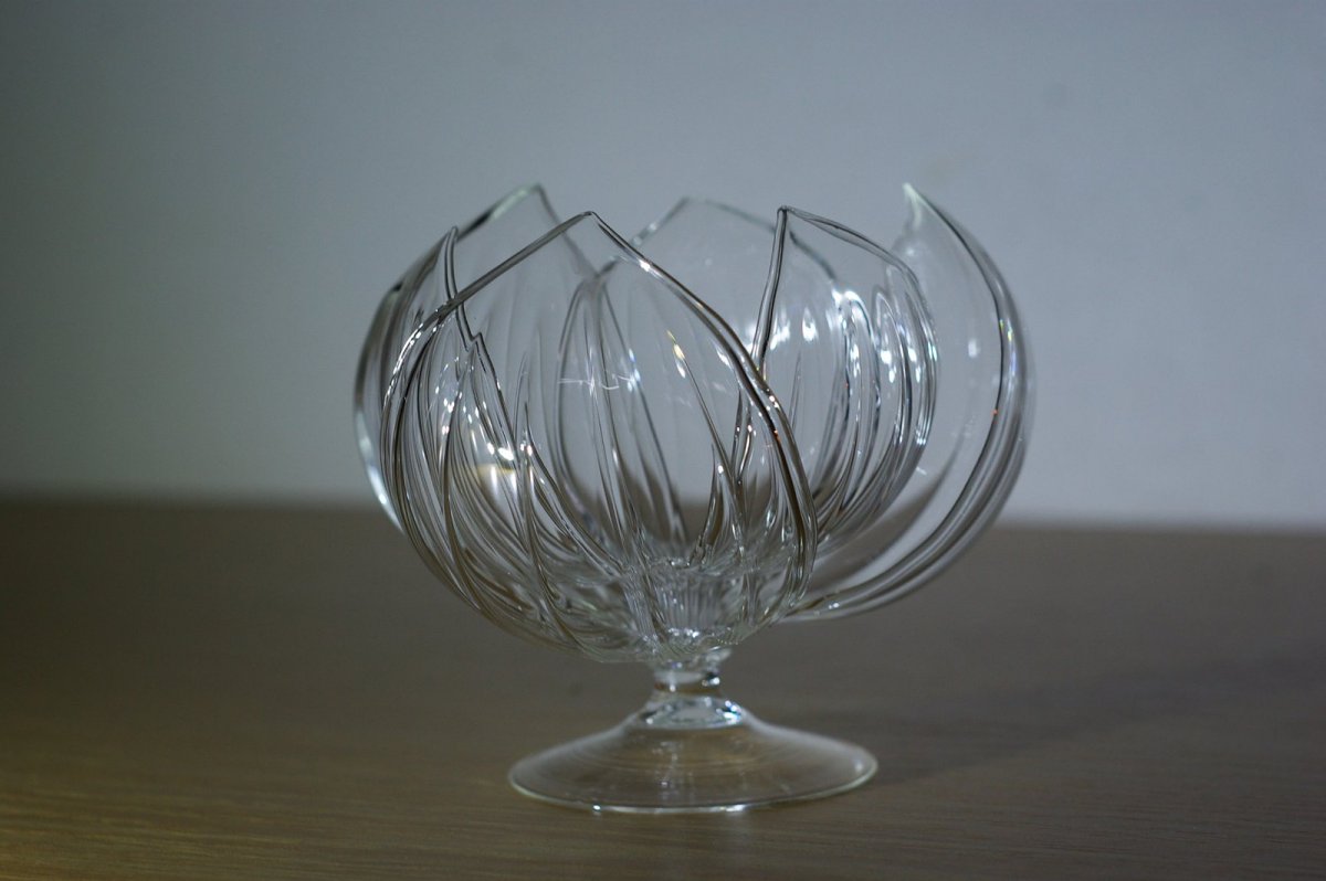 Pohledem působí jako broušený. Tento efekt je způsoben rozfouknutím conturaxové trubice na kahanu.