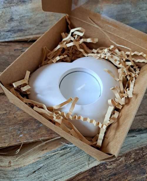 Materiál vytváří pevné a hladké odlitky s krásnou přírodní bílou barvou, která působí elegantně a nadčasově. Svícen se hodí jako jemný doplněk do interiéru – na stůl, parapet, poličku nebo jako součást sváteční výzdoby.