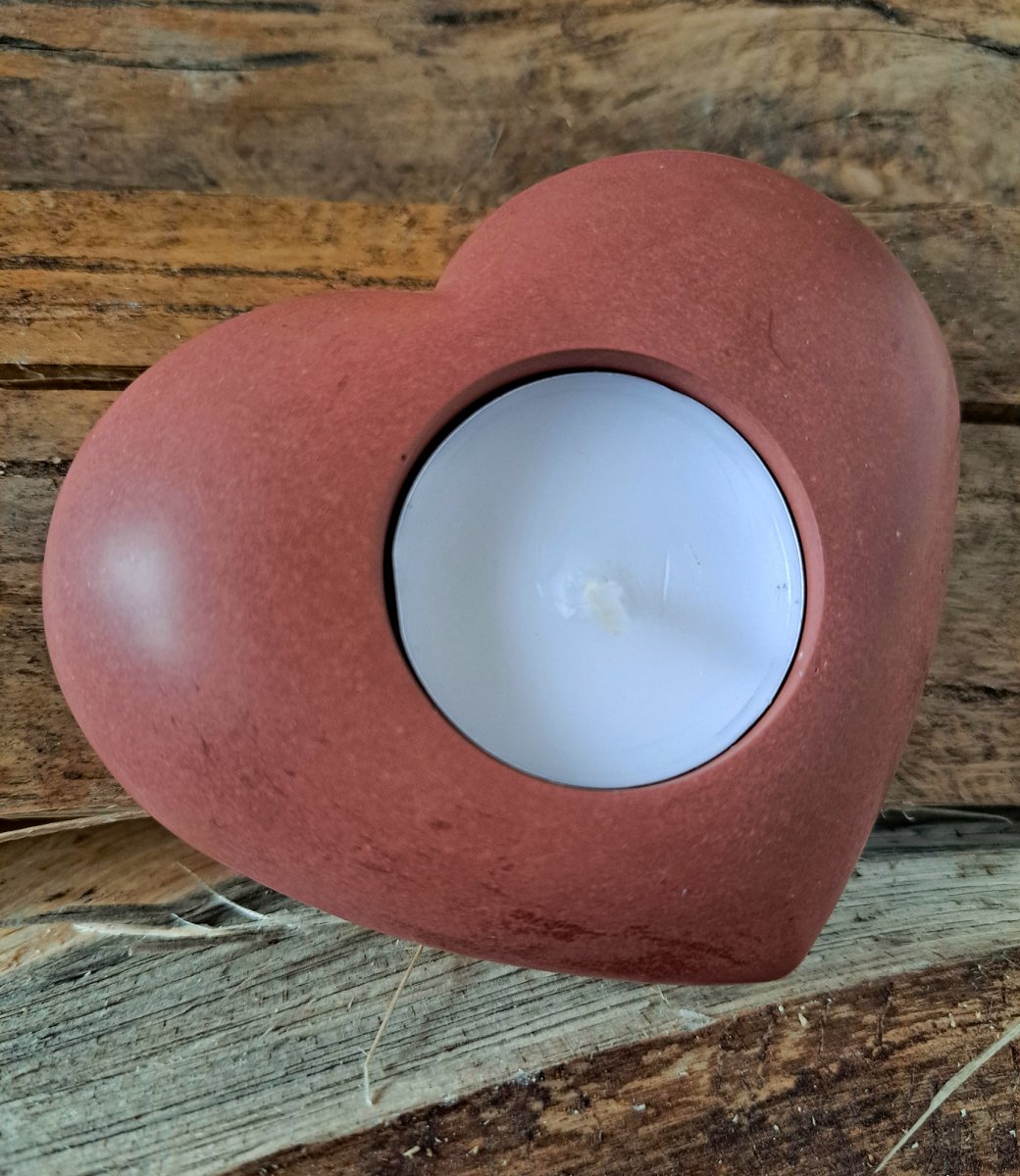 Jemný svícen ve tvaru oblého srdce, ručně odlévaný z Efkoflotu – vysoce jemné licí hmoty, používané pro výrobu dekorací a drobných designových objektů.
