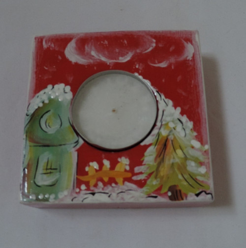 Krásný svícen,ručně malovaný,který se hodí do každé domácnosti.v-8,5,š-8,5,h-3cm-malováno kvalitní barvou atryl,přelakováno lodním lakem-velká ododnost proti oděru.