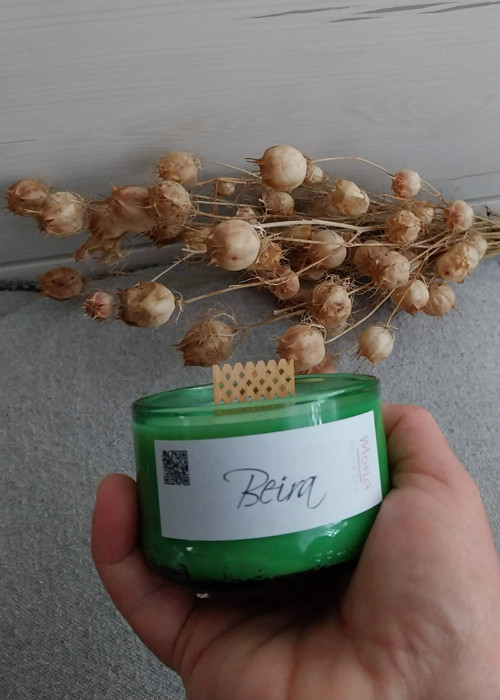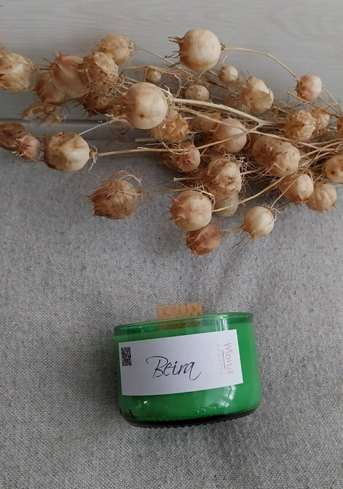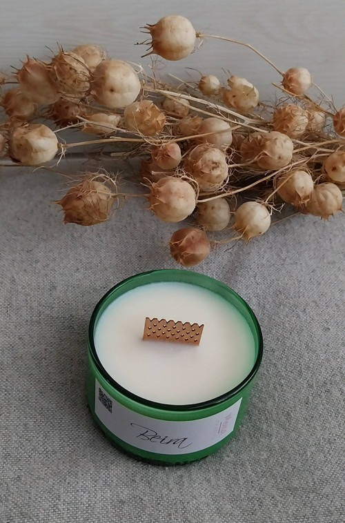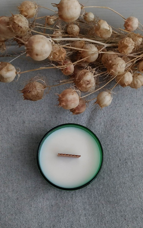 - Přírodní, ručně vyráběná sójová svíčka ve skle.