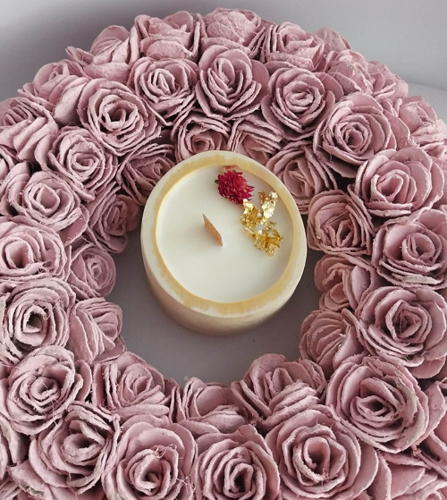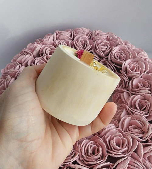 - Přírodní, ručně vyráběná sójová svíčka ve dřevě.