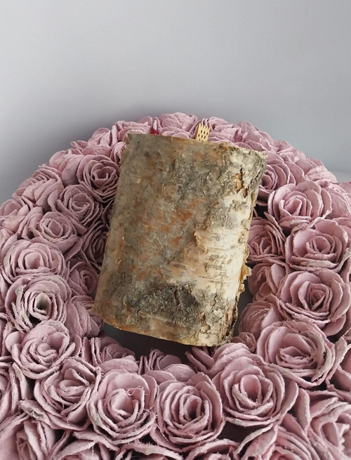 Svíčka ve dřevě. Spojení přírody s krásnou svíčkou, nádhera. Zdobená plátky zlata a sušenými růžemi.