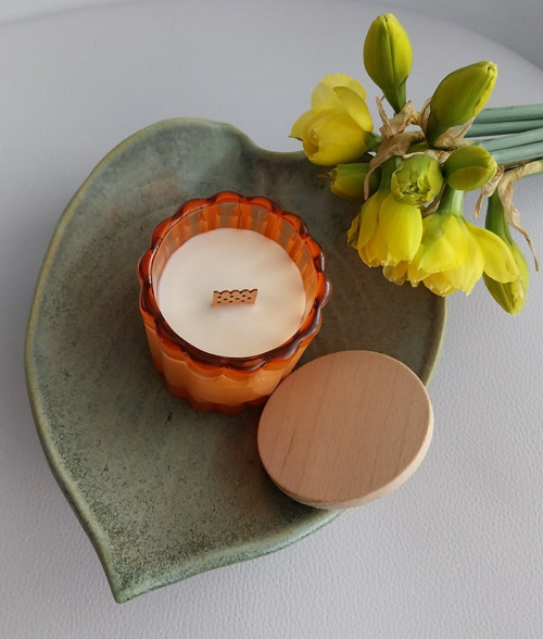 - Přírodní, ručně vyráběná sójová svíčka ve skle.