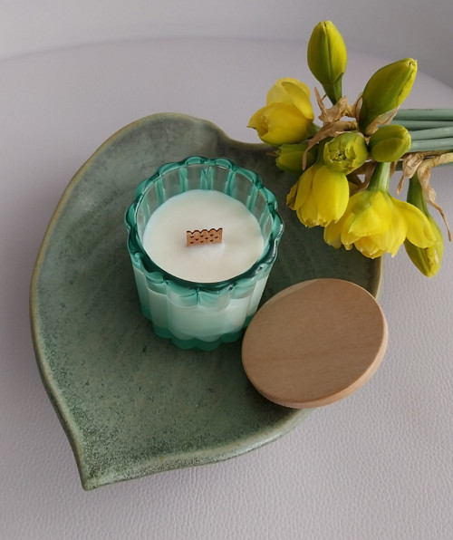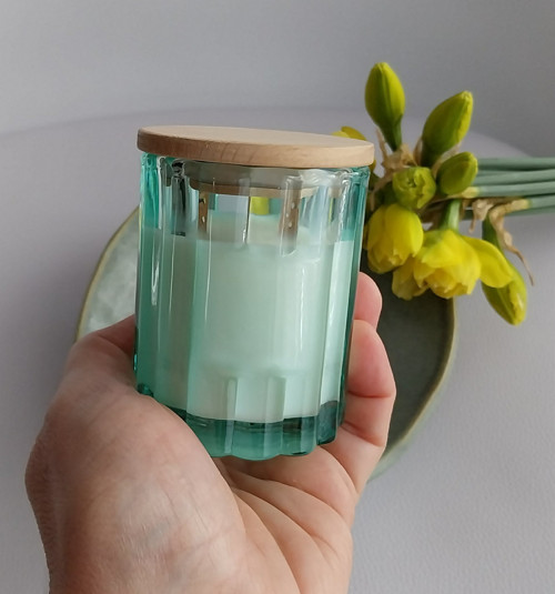 - Přírodní, ručně vyráběná sójová svíčka ve skle.