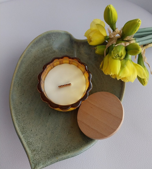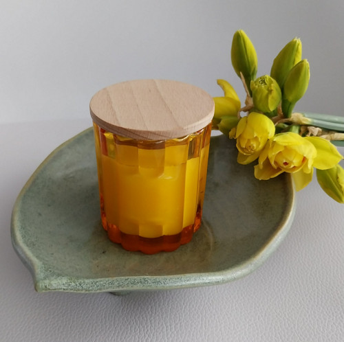 - Přírodní, ručně vyráběná sójová svíčka ve skle.