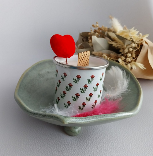 Svíčka v plecháčku, která je velmi oblíbená. Malinký hrníček, který potom zůstane na kávičku udělá radost každý den.