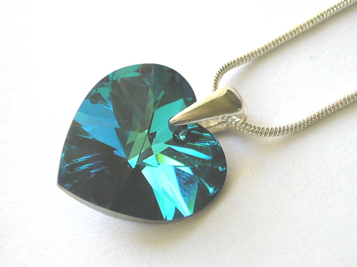 Sada je vyrobená z original crystallized swarovski, srdce vel. 10 mm ( náušnice ) a 18 mm ( náhrdelník ) v zajímavě tmavě modré jiskřivé barvě Bermuda Blue AB. Zadní strana srdíček je pokovena pro větší efekt odrazu světla. Dále jsem použila skleněné broušené korálky 4mm a jiskřené korálky 4 mm ve stříbrné barvě.
