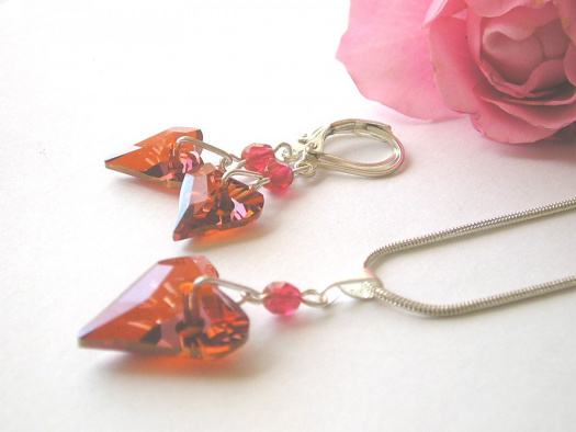 Souprava je vyrobena z nádherně třpytivých original crystallized Swarovski Wild Heart v červenooranžové barvě Red Magma 12 mm ( náušnice ) a 17 mm ( náhrdelník ).