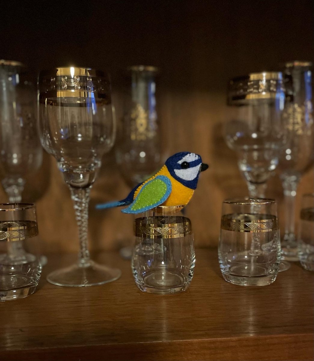 Maličká sýkorka je ideální k zavěšení. Hodí se nad postýlku, na záclonu, na větvičku a vlastně kamkoliv si budete přát...