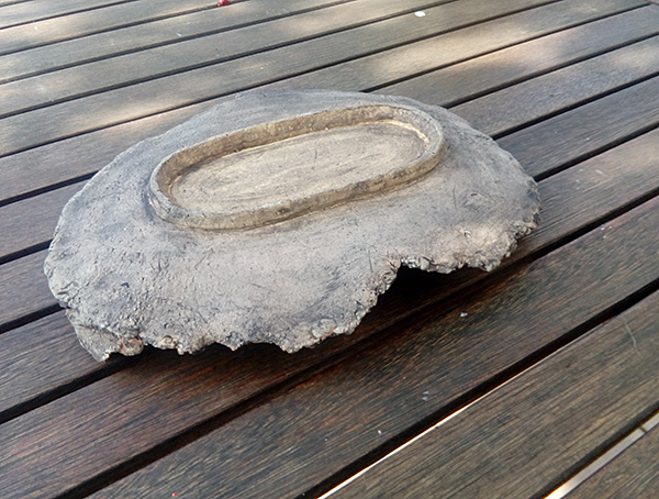 Romantika jak jen to šlo. Tác ze šamotové hlíny zdobený květem. Barvený burelem.