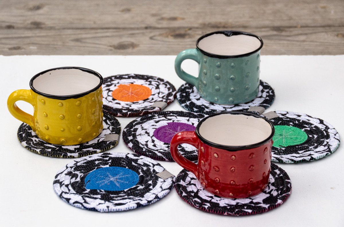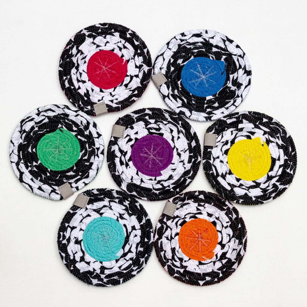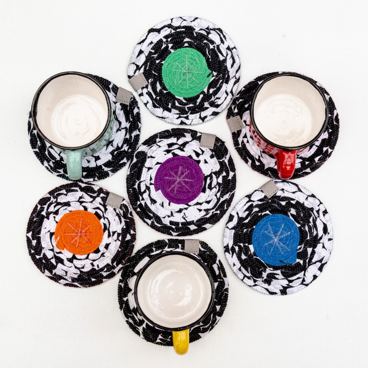 Kolečka od sklenic či hrnků vzhled vašeho stolu nijak nevylepší, naopak. Tácky ze šňůry vyrobené sešitím bavlněné šňůry, omotané různobarevnými látkami, tento problém řeší jednoduše beze zbytku...