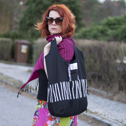 Tašku je možné nosit přes rameno (uši jsou dlouhé přesně tak, aby tvar tašky korespondoval s hloubkou podpaží a eliminoval tak možnost nechtěného rozevírání tašky), docela dobře ji však můžete využít i jako nákupního pomocníka, ve kterém si svůj úlovek z obchodu odnesete domů.