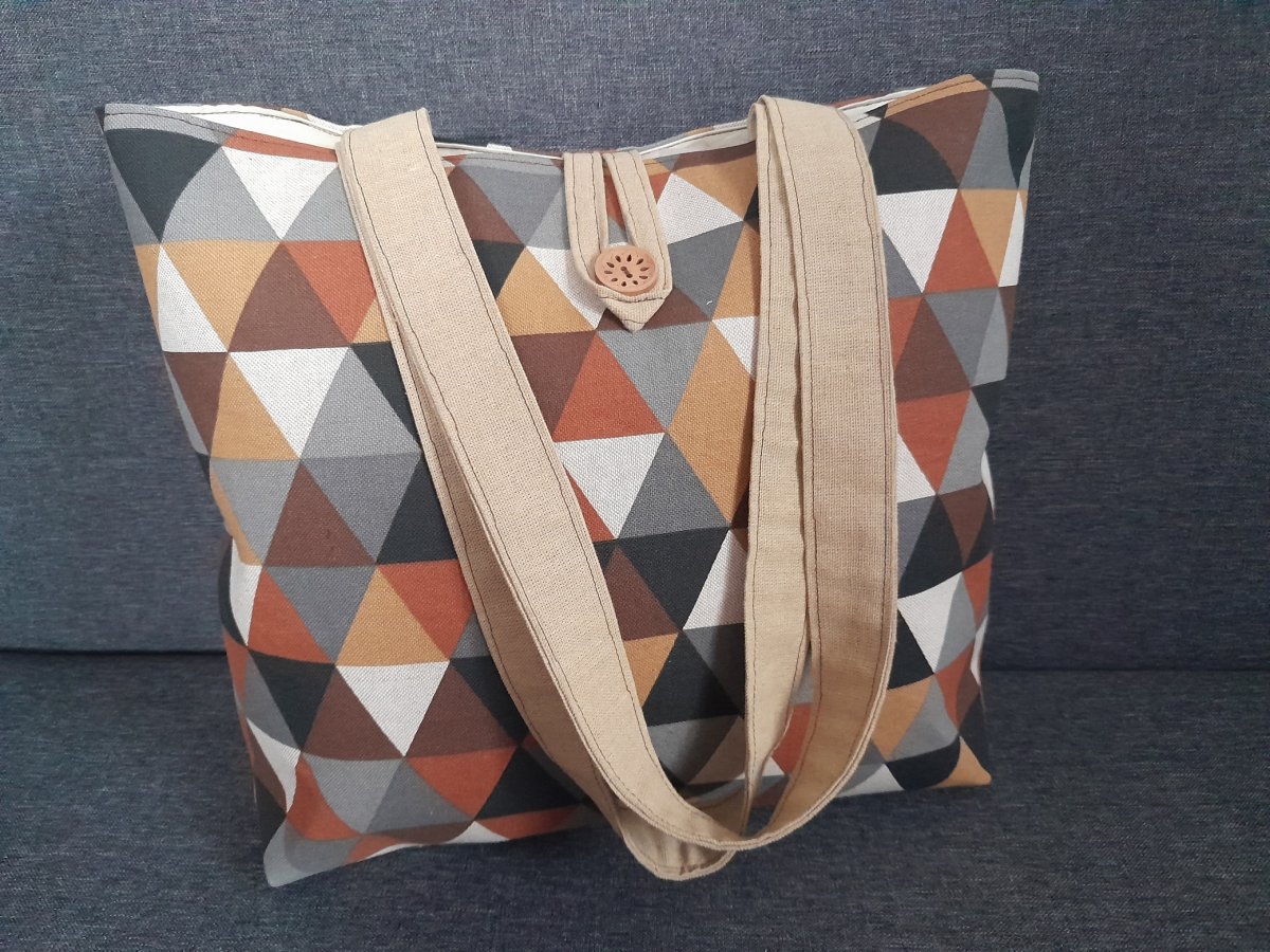 Nabízím kabelku, tašku šitou ze zajímavé látky. Zadní strana je stejná. Kabelka je vypodšitá s vnitřní kapsou, má odšité rohy. Je vystužená, drží tak hezky tvar. Má zapínání na knoflík. Horní lem je dvakrát prošitý aby pěkně držela. Do ruky i přes rameno.