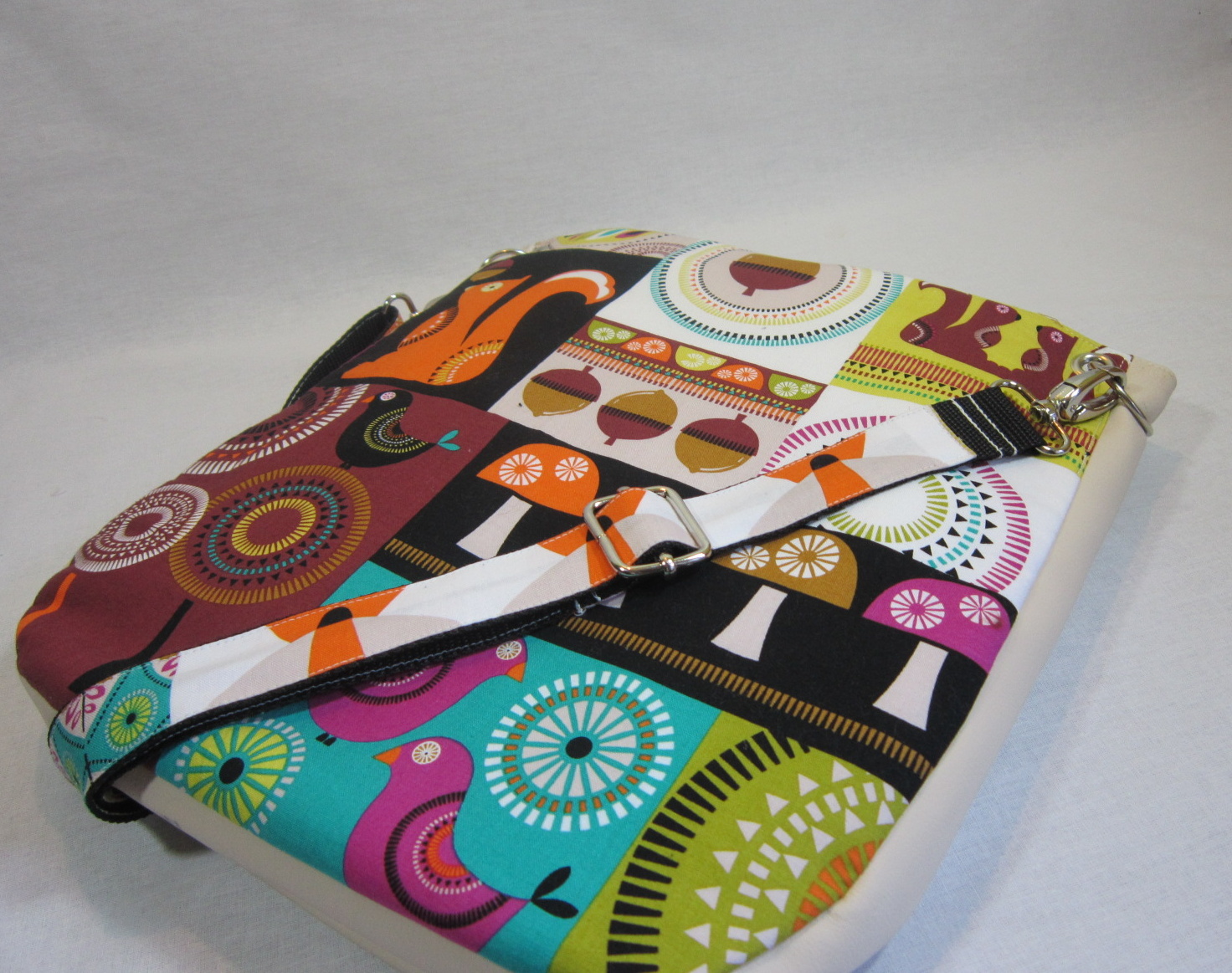 ušila jsem ji z veselé bavlněné látky s motivem zvířátek a světle béžové koženky