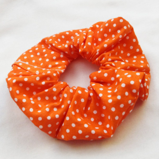 textilní, látková, látkový, ruka, veselá, gumička, náramek, retro, white, bílá, bílý, puntíky, puntíčky, puntíkovaný, puntíčkovaný, puntíkovaná, puntíčkovaná, veselý, dotts, oranžová, oranžový, orange, scrunchies, bavlněná, mrkvová, pomerančová, carrot, zářivá, bílooranžová, látkový náramek, látková gumička, retro gumička, veselá gumička, oranžová gumička, puntíkovaná gumička