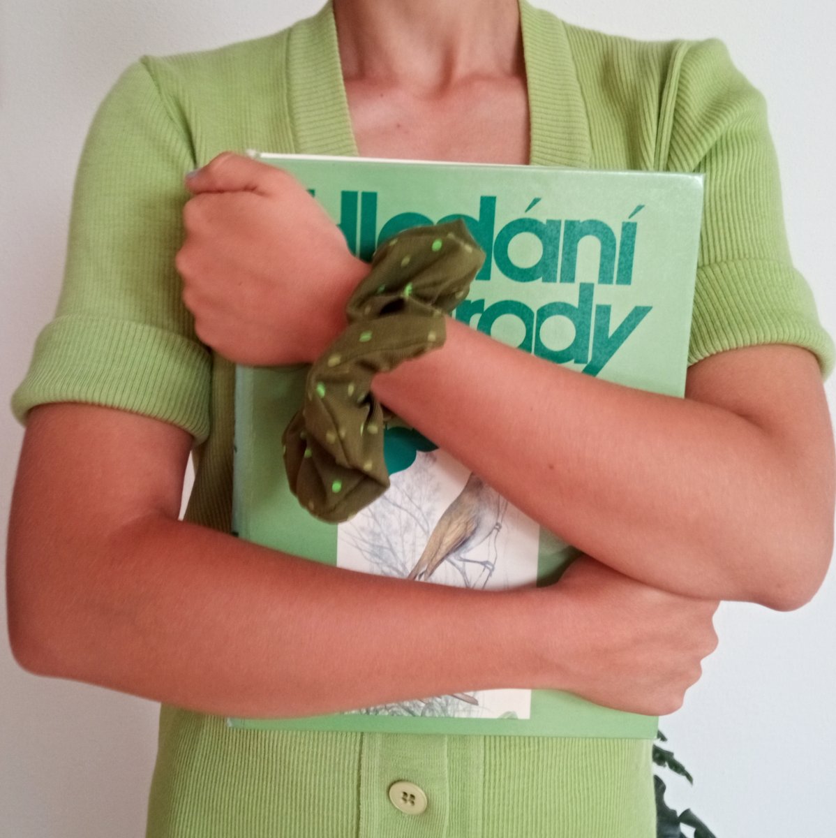 textilní, látková, látkový, ruka, veselá, gumička, náramek, retro, veselý, scrunchies, bavlněná, scrunchie, zelená gumička, zelený náramek, puntíkovaná gumička, puntíkovaný náramek, puntíčkovaná gumička, puntíčkovaný náramek, látková gumička, látkový náramek, jaro, knihy