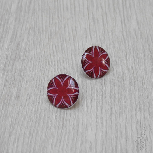 Puzetové náušnice s mandalkou v odstínu tmavě červené - malinové