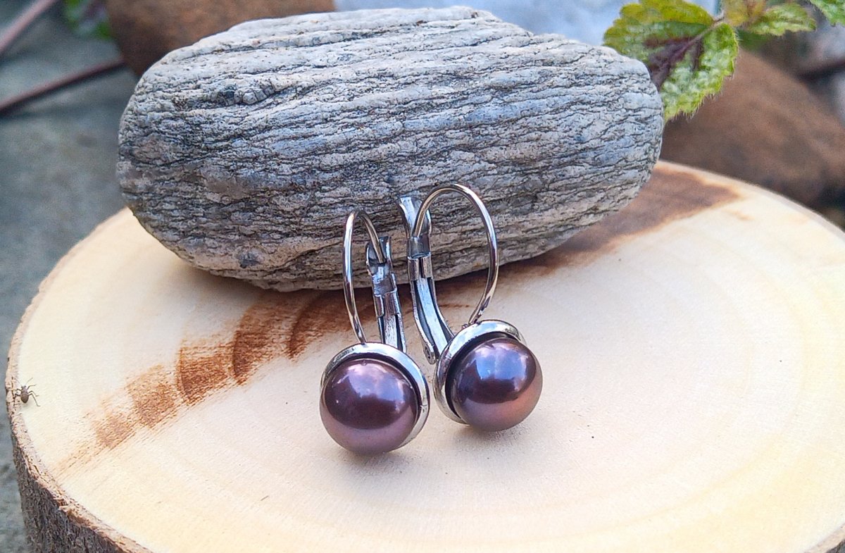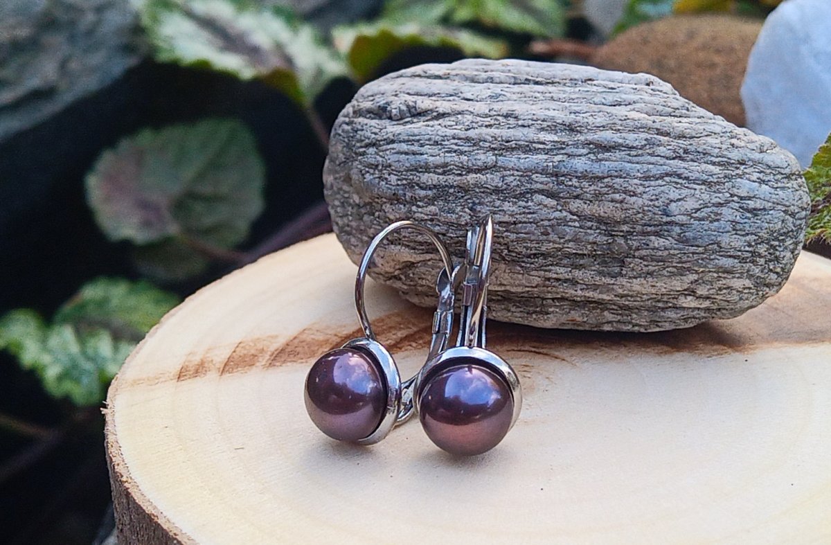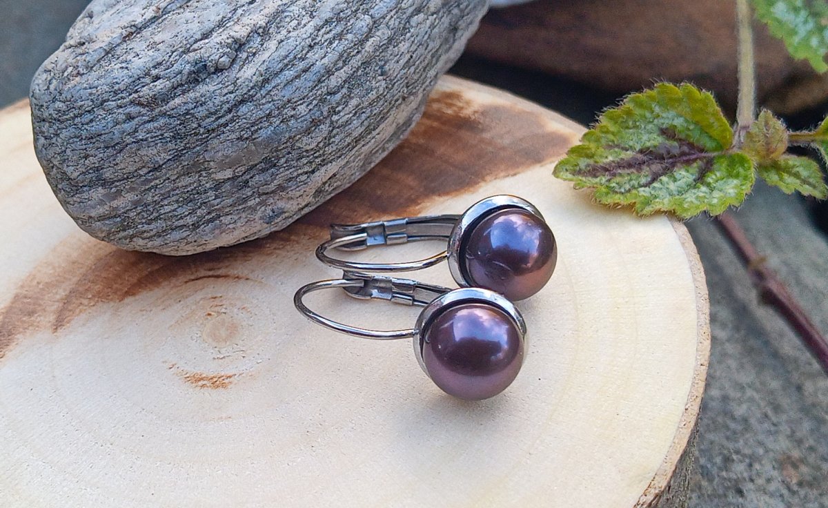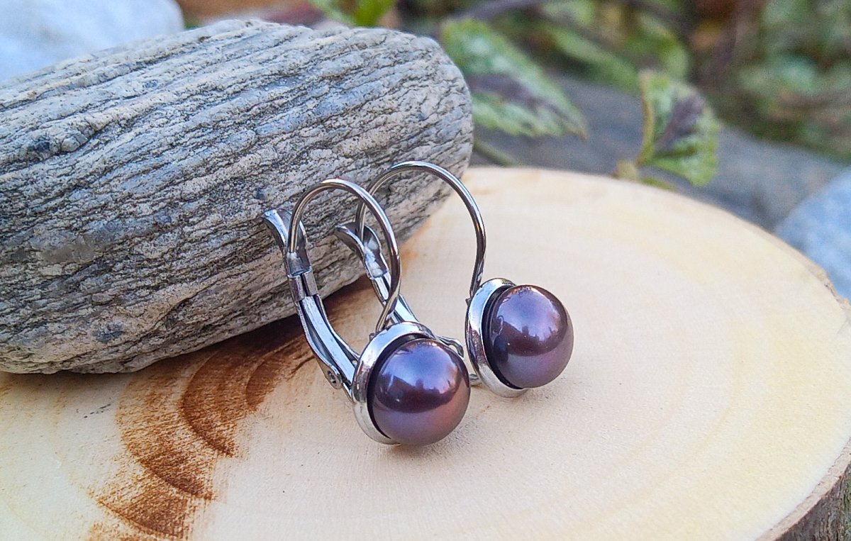 Elegantní náušnice s dokonale lesklými mořskými antracitovými perlami o průměru 8 mm s krásnými duhovými odlesky vloženými do zavíracích háčků z leštěné chirurgické oceli - hypoalergenní, vhodné i pro alergiky.