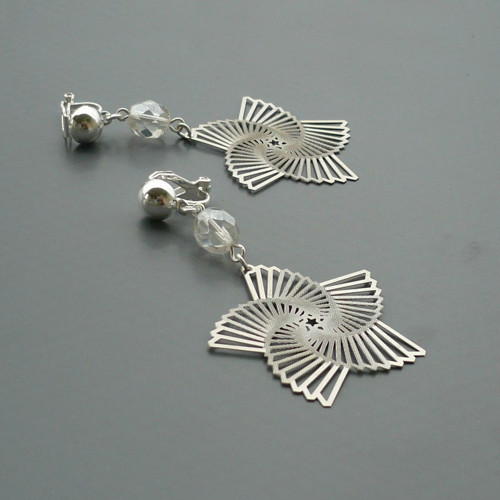 Jednoduché lehoučké klipsové náušnice (není potřeba mít propíchnuté ouško) jsou tvořeny horním lesklým průhledným broušeným skleněným korálkem a spodním dekorativně vyřezávaným plíškem z chirurgické oceli ve tvaru hvězdice.